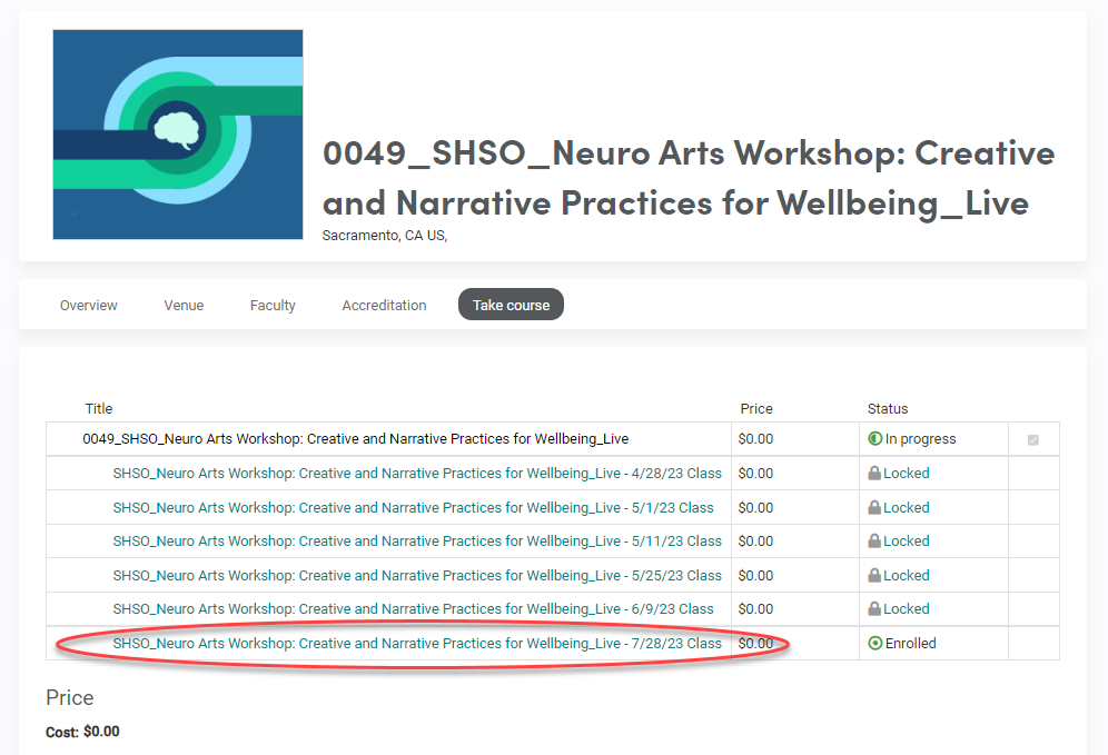 Please note: You will at this point be locked out of selecting alternate class dates. As such the "Take Course" button will be blacked out and does not apply on this page.