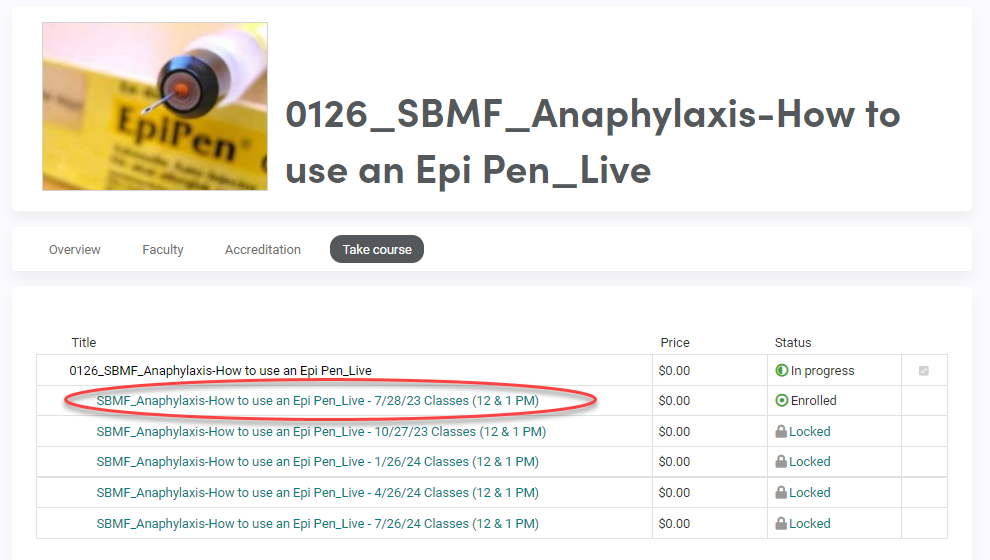 This course has multiple classes to choose from, each with different dates as shown below: