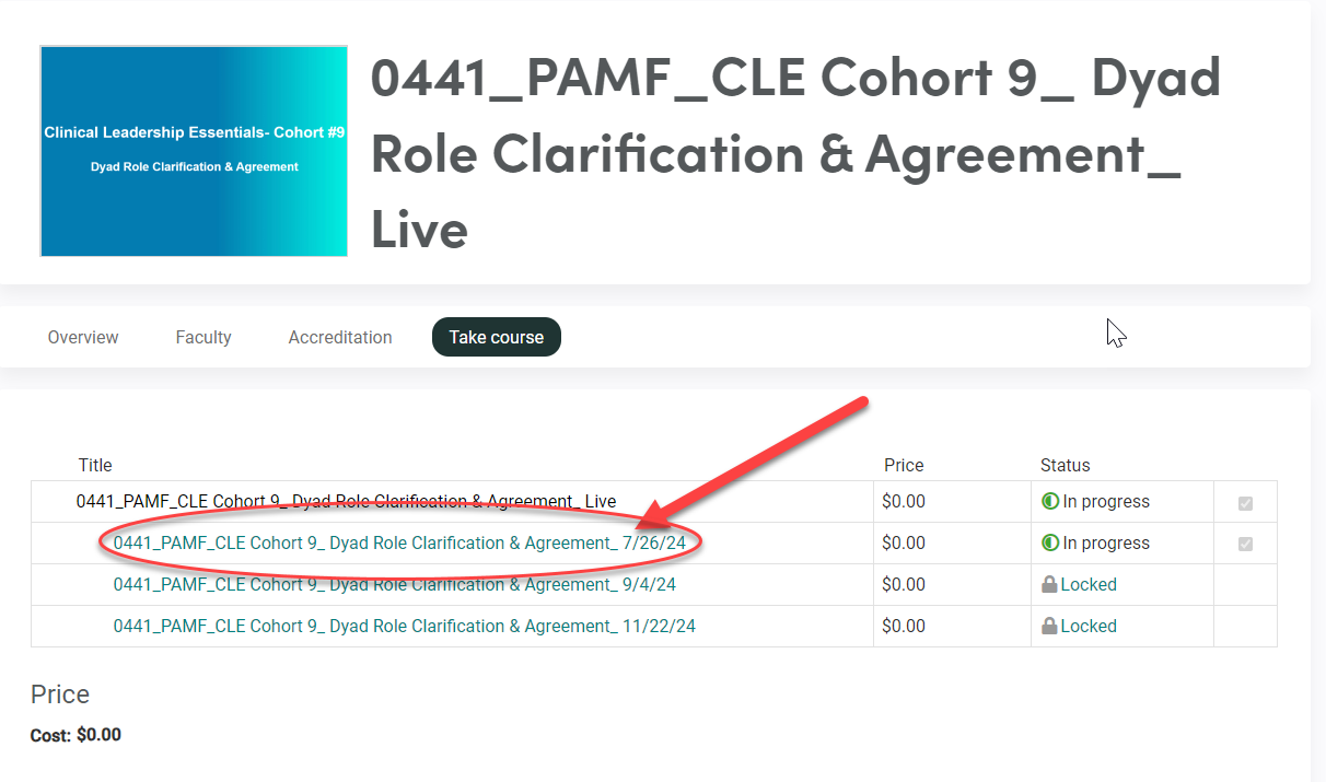 Next, click on the teal hyperlink for the class date you are enrolled in to begin the course.