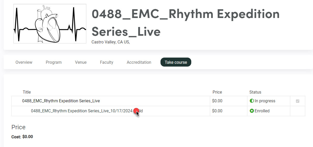 Please note: You will at this point be locked out of selecting alternate class dates. As such the "Take Course" button will be blacked out and does not apply on this page.