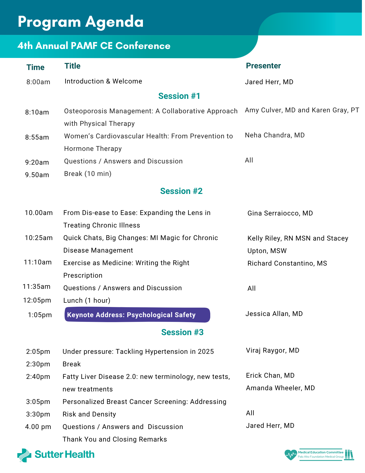 This event is generously funded by PAFMG Philanthropy and is not open to providers unaffiliated with Sutter Bay Medical Foundation.